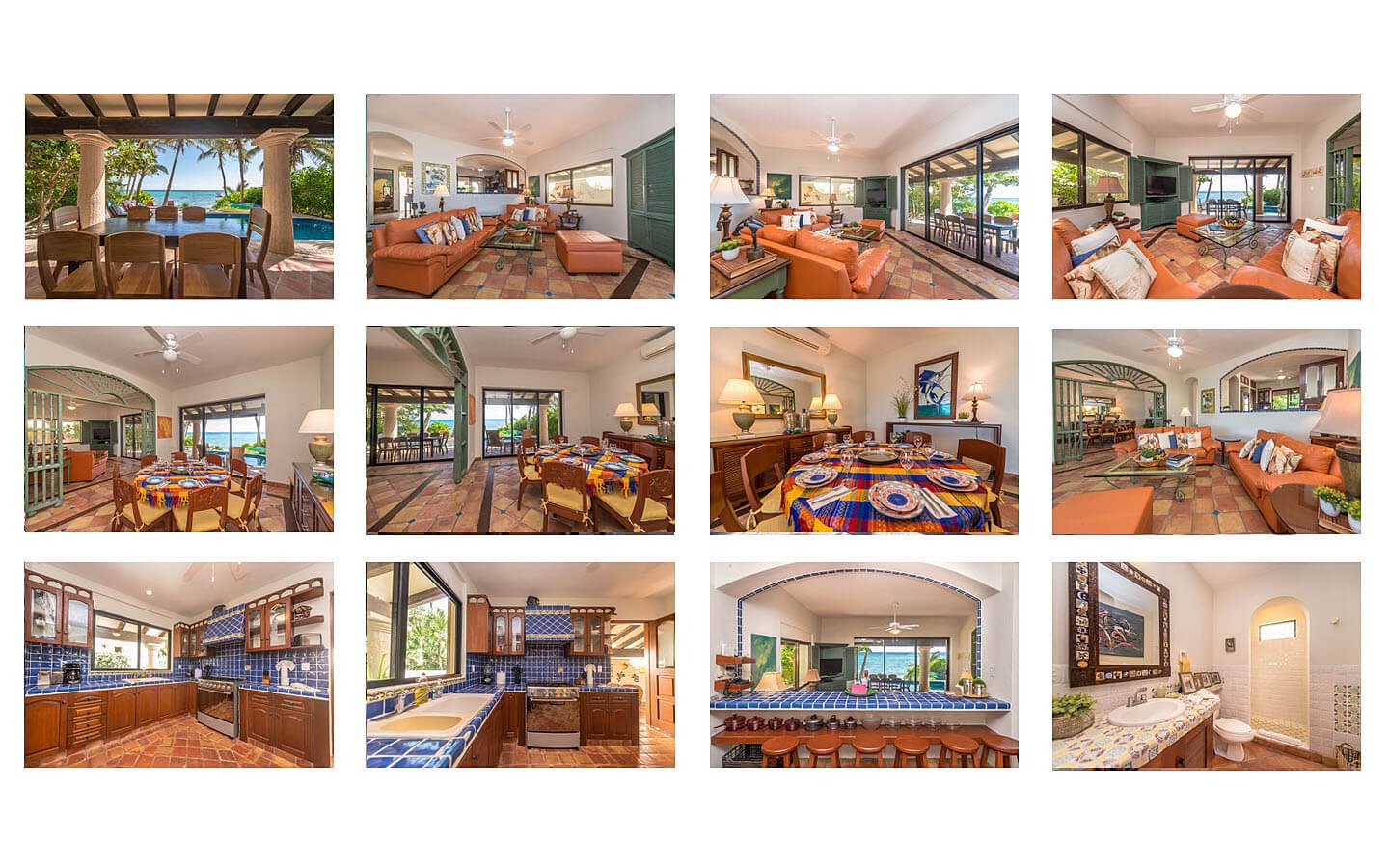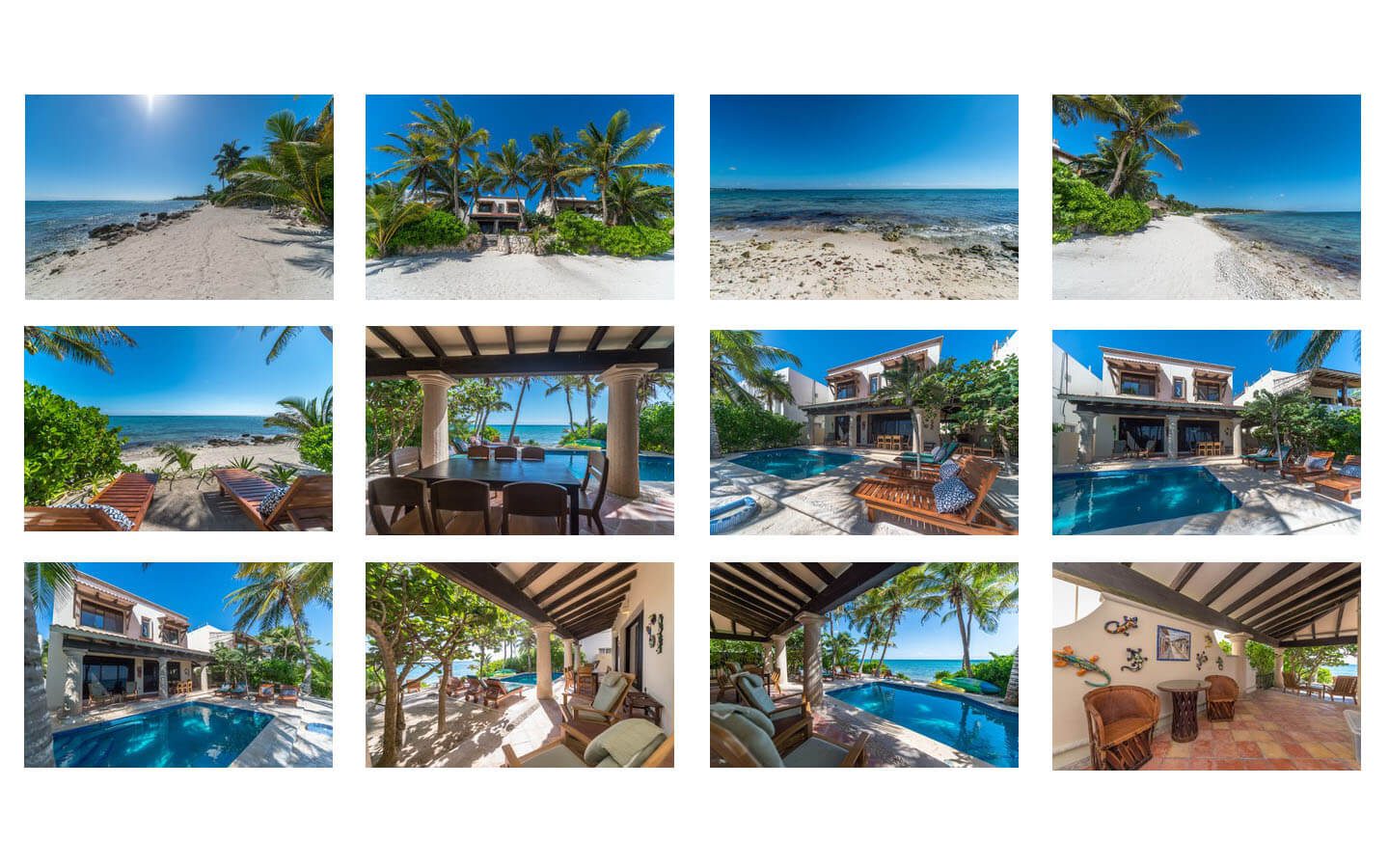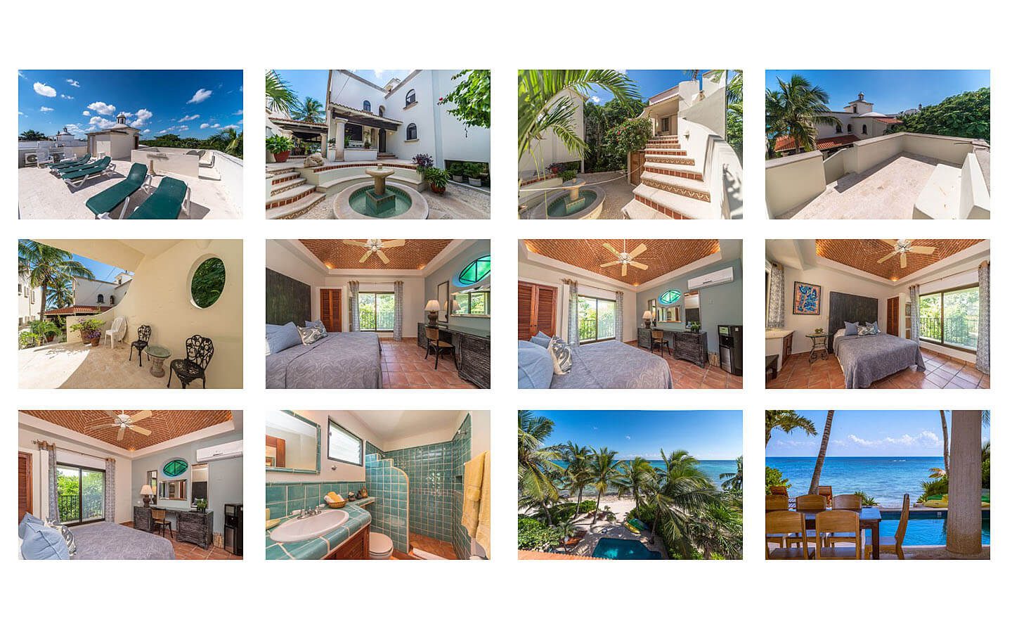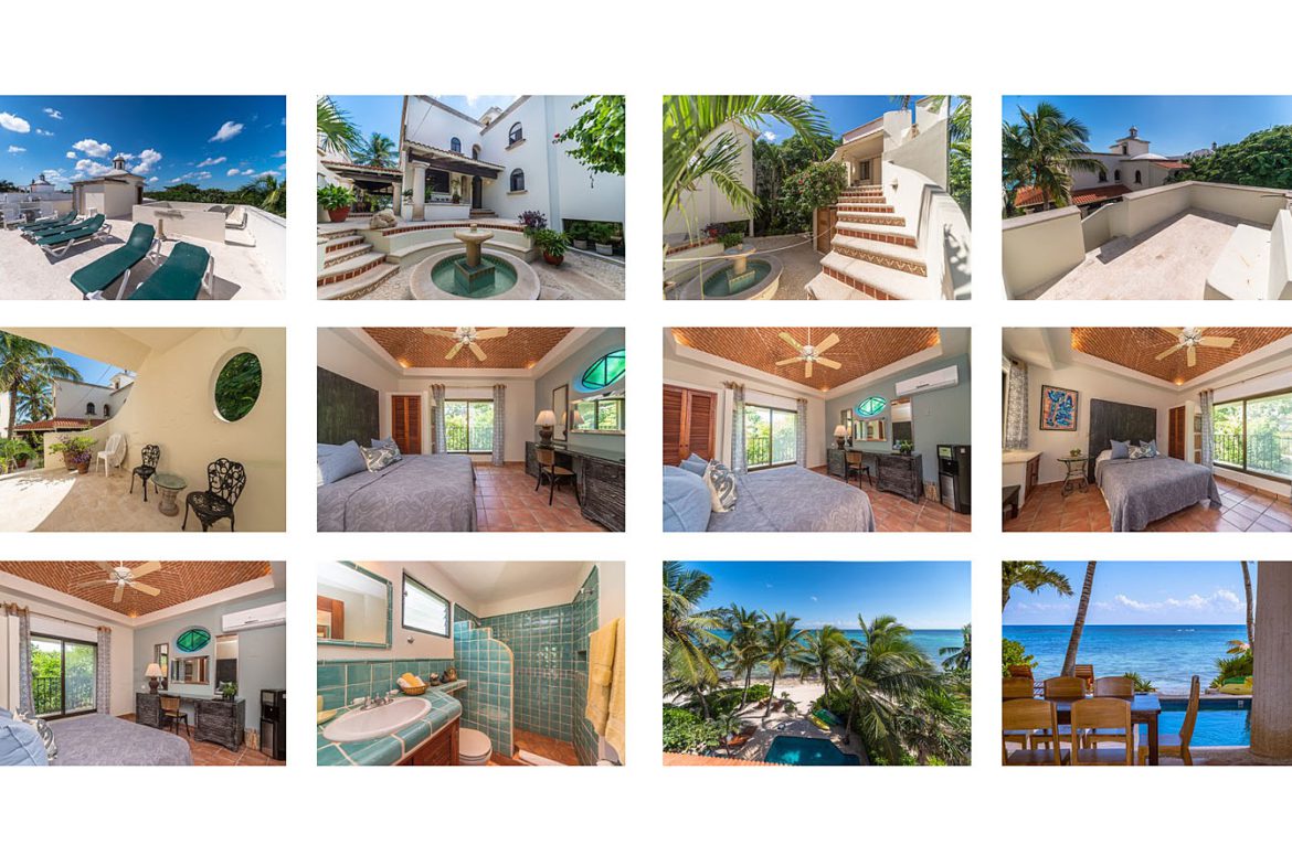 This ”Hacienda” style villa located on the white sandy beach of gated, residential, South Akumal. The villa is a comfortable and colorful mix of arts and crafts from around the world set in the midst of tropical gardens and Caribbean beach. Its charm is completed by wrought iron balconies and a courtyard entry fountain.