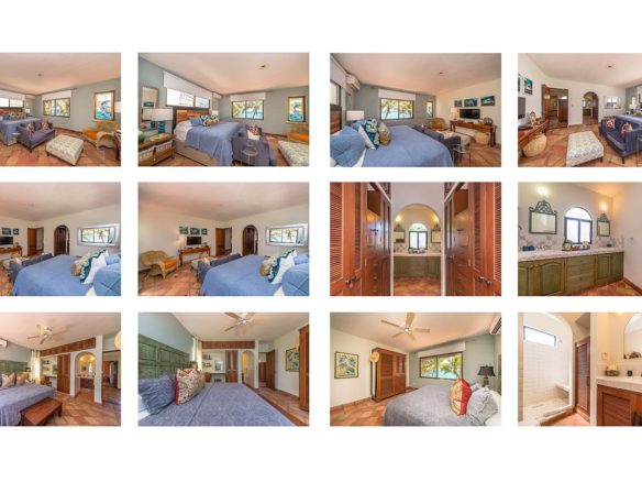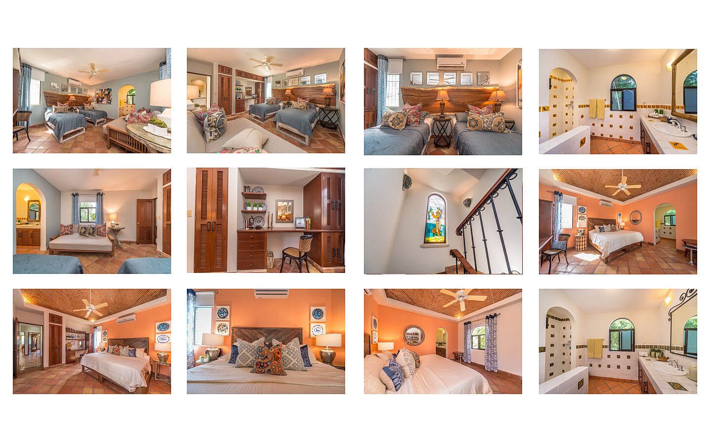 Sleep and dream in one of 4 bedrooms in the main villa. The Bedrooms: The ground floor bedroom with a garden view – the spacious ensuite room has two twin beds (can be made into a king) and a trundle bed. And then on the upper floor, three gorgeous and relaxing air conditioned bedrooms. The ocean view master bedroom is furnished with king and has private bath. Another lovely guest bedroom is located next to the master bedroom with the same wonderful ocean views, king sized bed, and ensuite bathroom. A third ensuite guest bedroom on the upper floor is furnished with a king bed and also enjoys a stylish brick domed ceiling and a lovely view of the garden. All the bedrooms are spacious and well-appointed. All of the ensuite bedrooms have showers and either a single or double vanity.