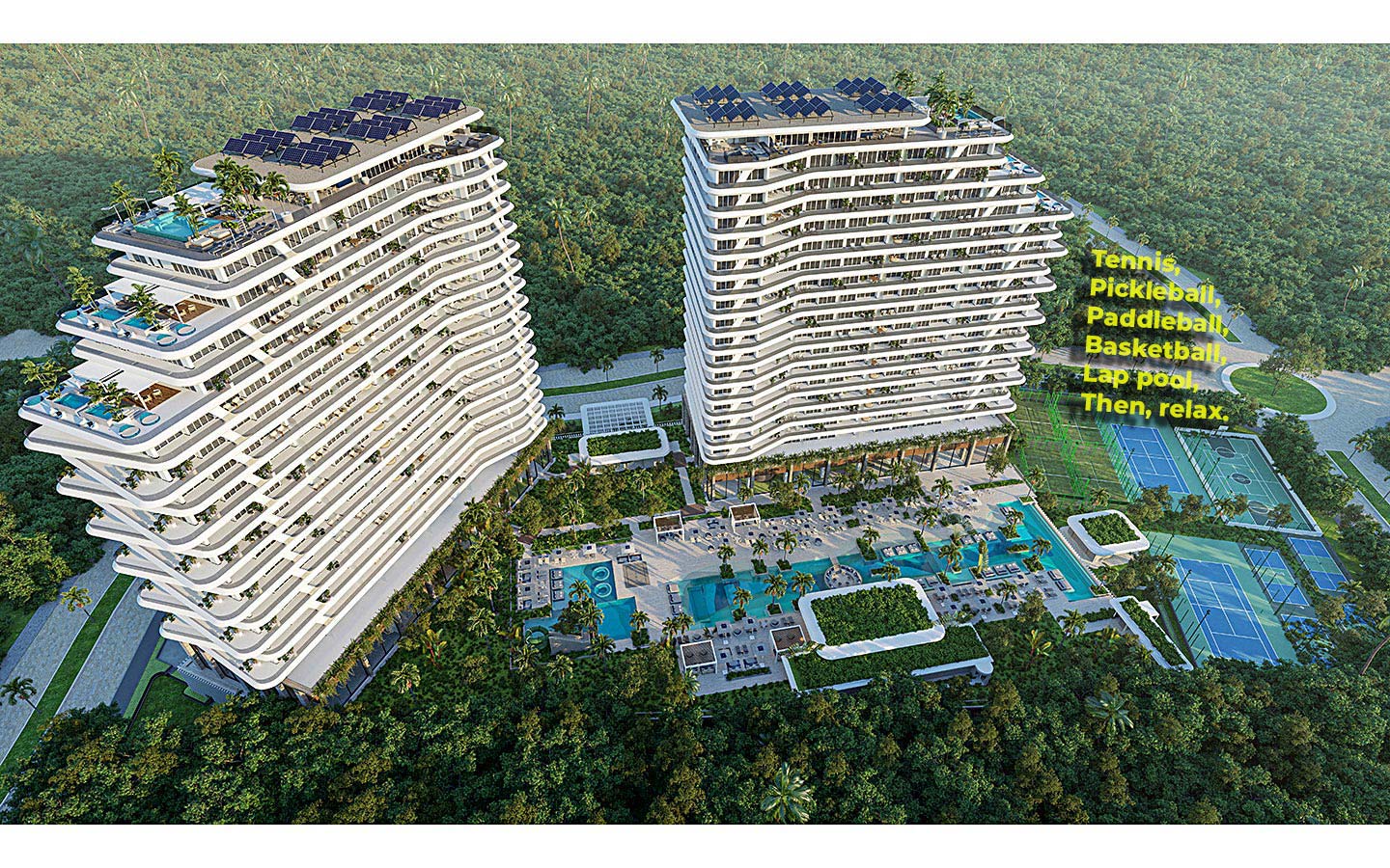 Over 50 resort-style amenities. Call or send a request for the presentation and complete list. The photos only show a few amenities. Of course, Náutica Residences offer so many more – resort style.