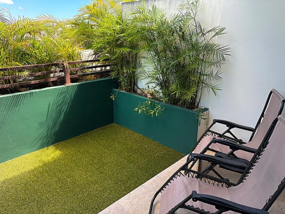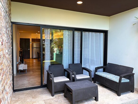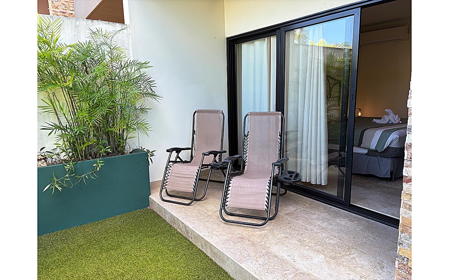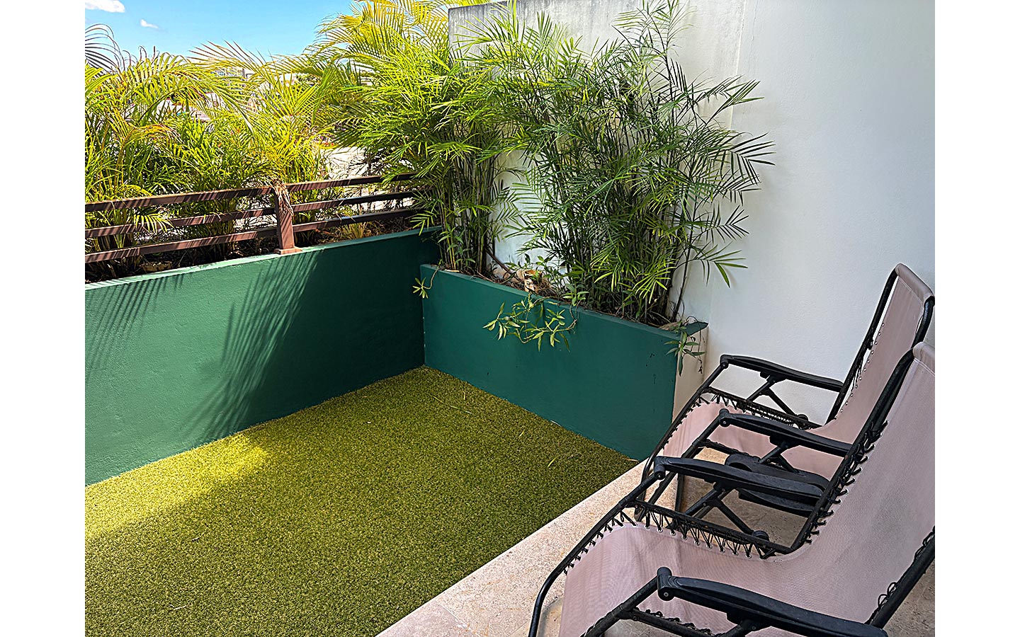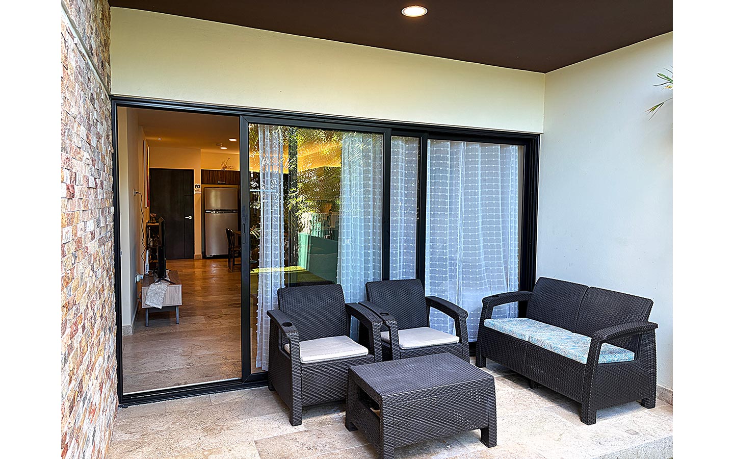 Veranto 102 Garden Condominium in Playa del Carmen ”centro”. Why ”garden”? The garden outdoor area is more than one third of the private area of this residence. Walk directly out from the living room into your private patio, surrounded by planters and tall palms. Your palms, your garden.