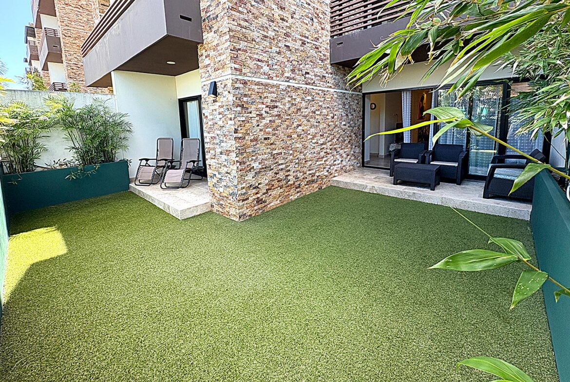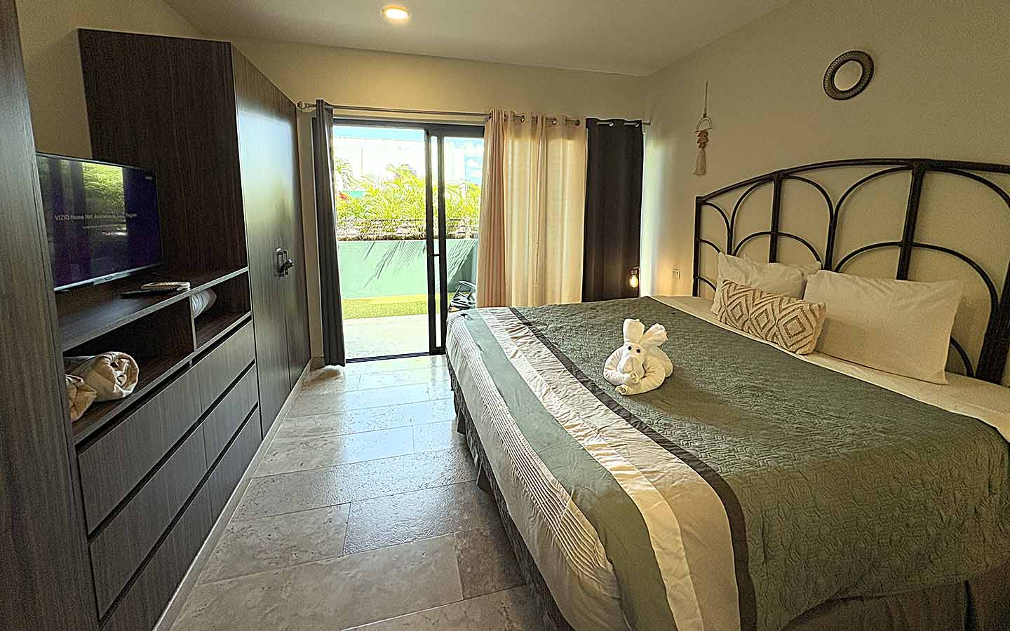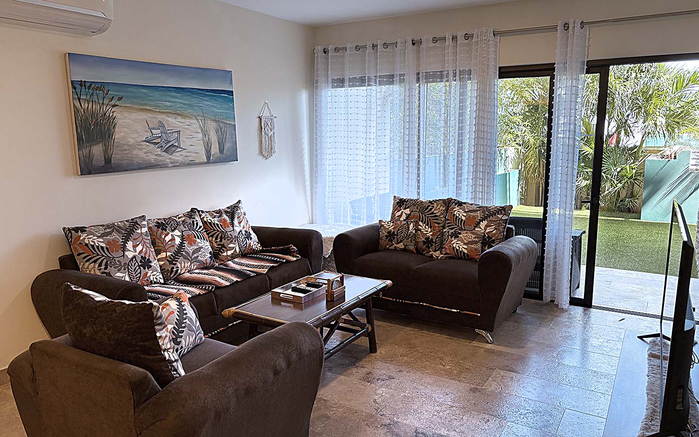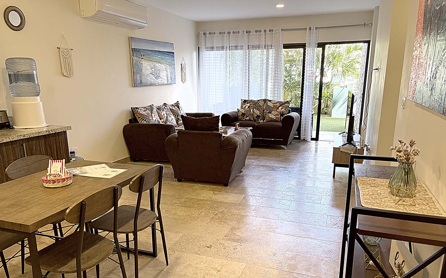 Veranto 102 Garden Condominium in Playa del Carmen ”centro”. Why ”garden”? The garden outdoor area is more than one third of the private area of this residence. Walk directly out from the living room into your private patio, surrounded by planters and tall palms. Your palms, your garden.