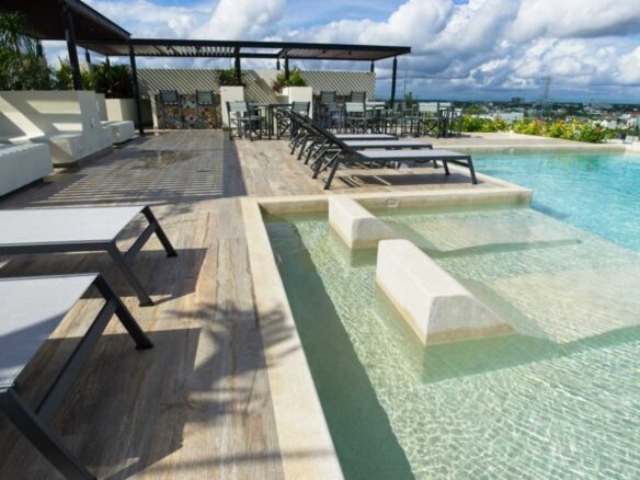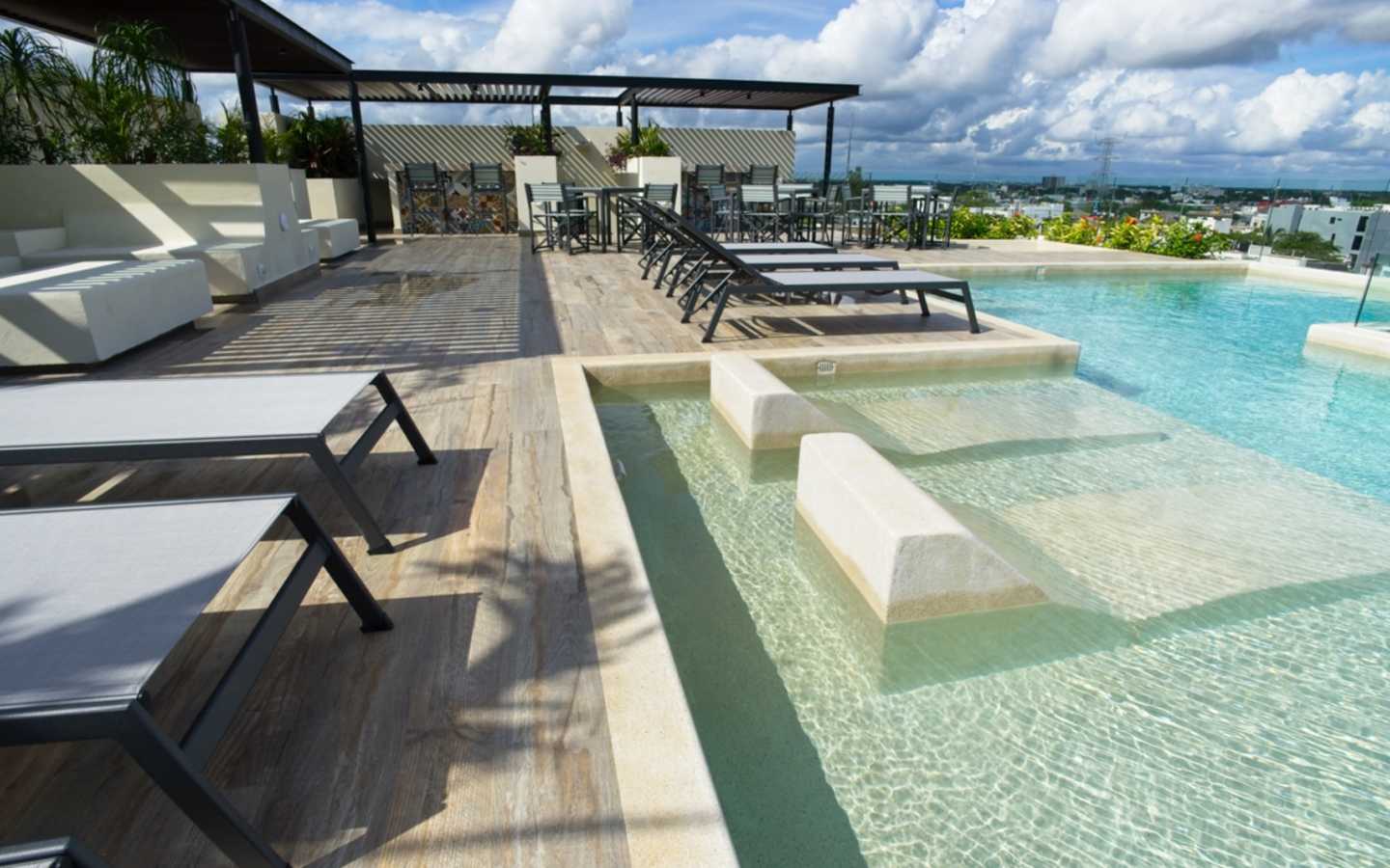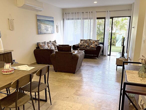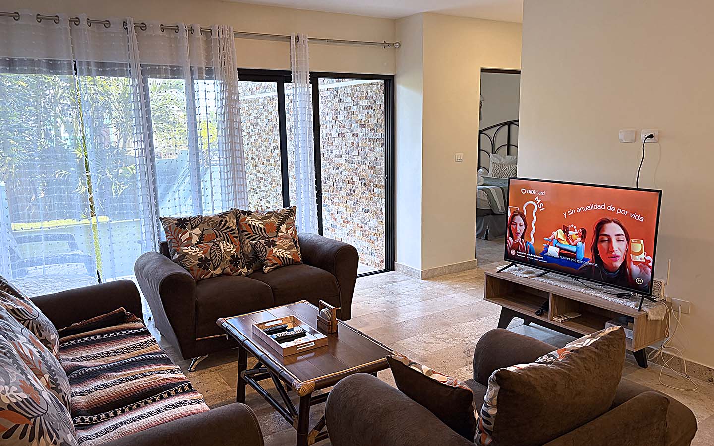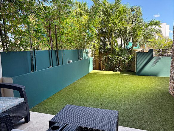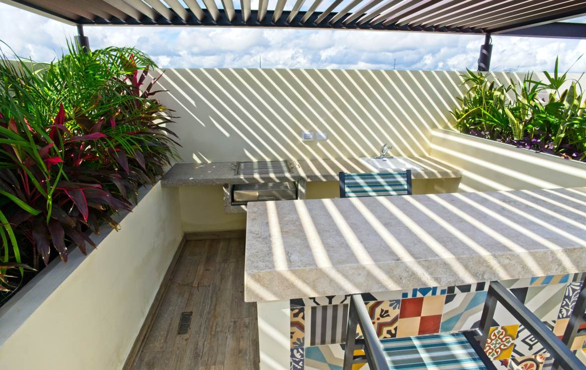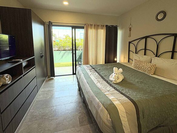 Veranto 102 Garden Condominium in Playa del Carmen ”centro”. Why ”garden”? The garden outdoor area is more than one third of the private area of this residence. Walk directly out from the living room into your private patio, surrounded by planters and tall palms. Your palms, your garden.